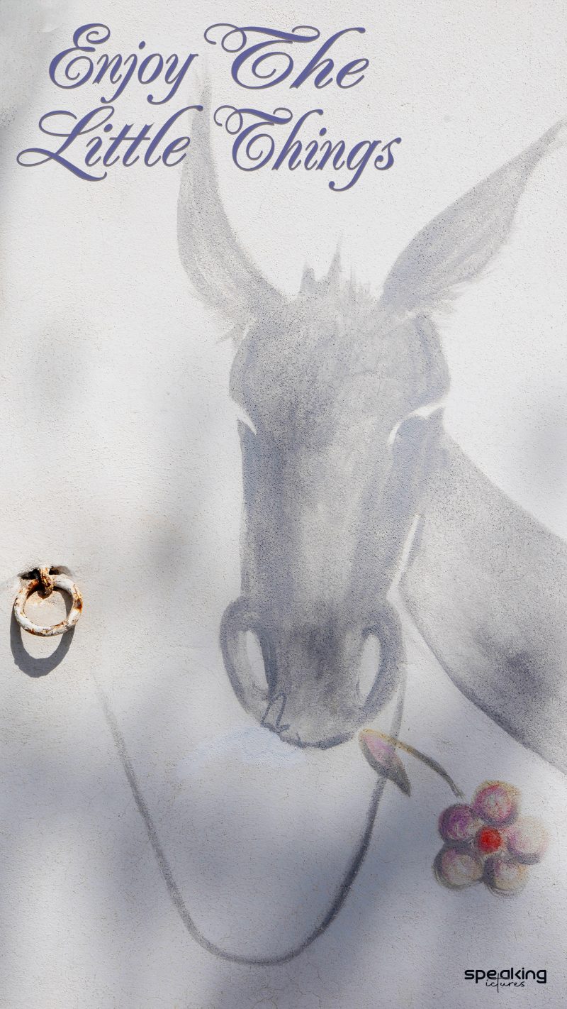Discover joy in the small moments with this charming mural of a Catalan donkey, its mouth playfully holding a delicate flower. Perched with a breathtaking view of the sea, this artwork, like the Kurt Vonnegut quote it evokes, reminds us to savor life’s subtle beauties. The artist’s touch, including a whimsical 3D hook, celebrates the grace found in life’s everyday treasures. Pause, breathe, and relish the little things, for they often hold life’s greatest meaning.