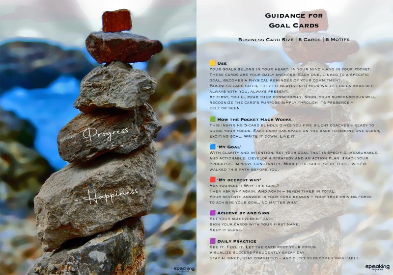 Trage deine Träume immer bei dir. Diese Edition im Visitenkartenformat, inspiriert von der Insel Mallorca, hält deine Ziele präsent – im Herzen, im Kopf und in der Tasche. Sie passen perfekt ins Kartenetui oder die Geldbörse – als täglicher Anker für Fokus und Ausrichtung.
